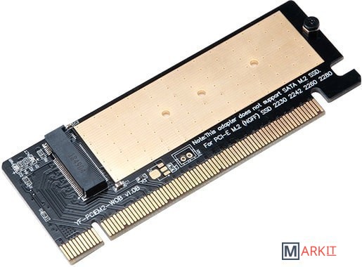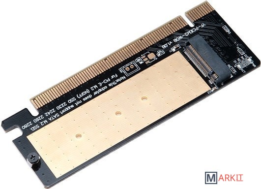 Адаптер для M.2 SSD с радиатором. Поддерживает PCI NVMe. Размеры M.2 - 2230, 2242, 2260, 2280.