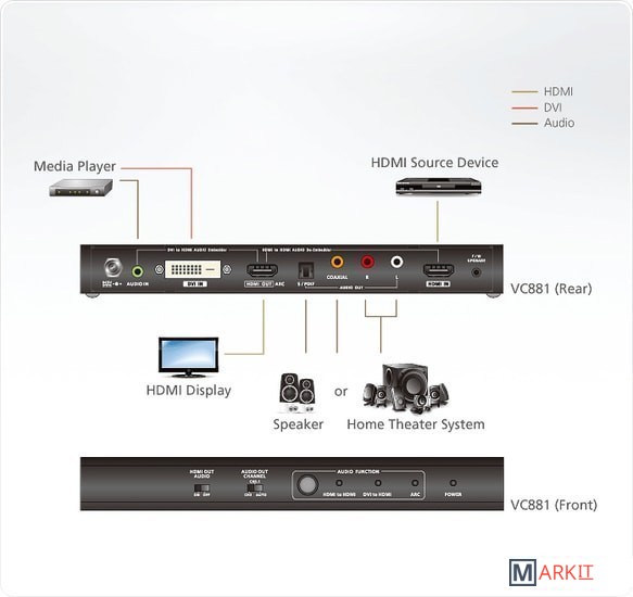 VC881-AT-G – видео-конвертер ATEN VC881 с поддержкой разрешений изображения до 4K и совместимостью с HDCP 1.4 преобразует вводимые сигналы HDMI/DVI-сигналы в сигналы HDMI или извлекает аудиосигнал из вводимых HDMI-сигналов.