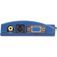 Данный преобразователь позволяет подключить ноутбук или компьютер с выходом VGA к мониторам или телевизорам со входом VGA, композитным или S-Video и просматривать изображение одновременно на всех подключенных экранах.В комплекте кабели: USB (питание), композитный кабель, VGA, S-Video.