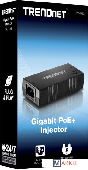 Применяется адаптер PoE TRENDnet TPE-115GI для подключения сетевого оборудования. С его помощью можно обеспечить технику необходимым питанием, поддерживает мощность до 30W на устройство. Поддержка расстояния до 100 метров. Задача адаптера TRENDnet TPE-115GI – преобразовать энергию для последующей подачи на устройство. Через сетевой кабель он подключается к розетке. Входное напряжение – 100-240 В. На выходе оно составляет уже 48 В.По одному шнуру передается и электрическая энергия, и сигнал сети, облегчается процесс установки и подключения оборудования. Пропускная способность у адаптера высокая – 1 Гбит/с.Соответствие стандартам: 802.3 (Ethernet), 802.3ab (1000BASE-T), 802.3af (PoE), 802.3at (PoE Plus), 802.3u (Fast Ethernet).В комплект поставки входит:- TPE-115GI;- Руководство пользователя;- Кабель питания (52V, 1.38A).