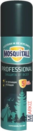 Средство репеллентное Mosquitall Профессиональная защита 150 мл – аэрозоль для использования в экстремальных условиях, незаменимое средство защиты для охотников, рыбаков, туристов. Защита от всех летающих кровосущих, таежных и лесных клещей до 5 часов.