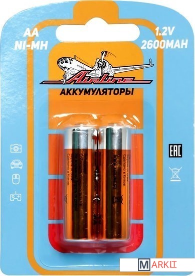 Markit » Батарейки, аккумуляторы, зарядные » Аккумулятор Airline AA 2600mAh 2 шт. AA-26-02