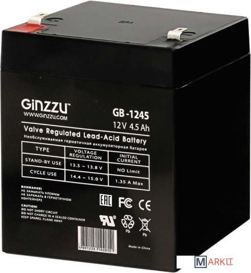 Markit » Аккумуляторы для ИБП » Аккумулятор для ИБП Ginzzu GB-1245 (12В/4.5 А·ч)