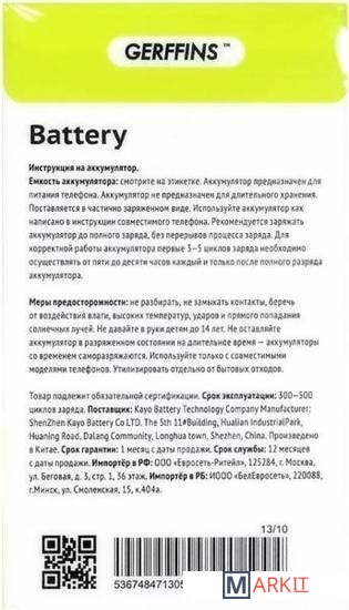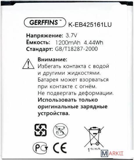 Markit » Аккумуляторы для телефонов » Аккумулятор для телефона Gerffins для Samsung K-EB425161LU