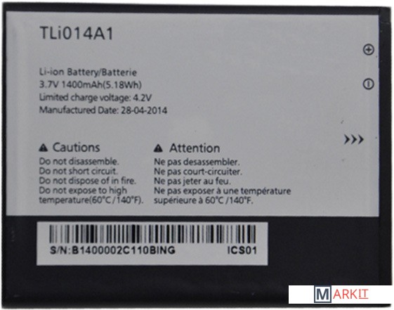Markit » Аккумуляторы для телефонов » Аккумулятор для телефона Копия Alcatel TLI014A1