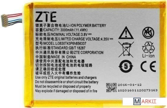 Markit » Аккумуляторы для телефонов » Аккумулятор для телефона Копия ZTE Li3830T43P6H856337