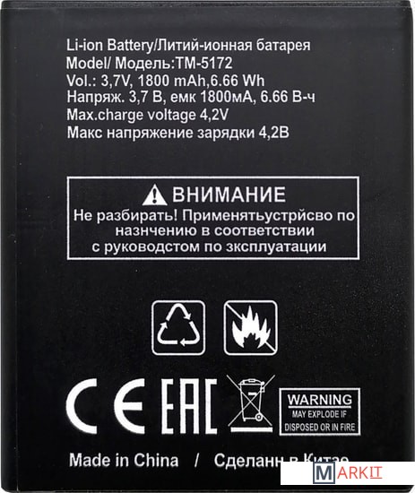 Markit » Аккумуляторы для телефонов » Аккумулятор для телефона TeXet TM-5172