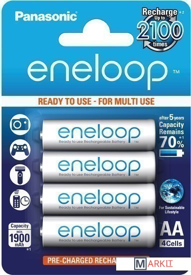 Markit » Батарейки, аккумуляторы, зарядные » Аккумулятор Panasonic Eneloop AA 1900mAh 4 шт. (BK-3MCCE/4BE)