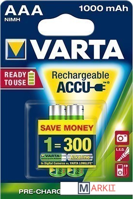 Markit » Батарейки, аккумуляторы, зарядные » Аккумулятор Varta AAA 1000mAh 2 шт. (05703)