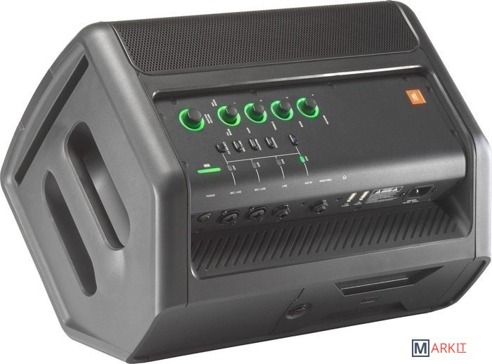 Пиковая мощность достигает 150 Ватт, оснащена 8-дюймовым низкочастотным динамиком и 1-дюймовым высокочастотным. Система имеет встроенный 4-полосный микшер, 8-полосный эквалайзер и эффекты обработки от dbx и Lexicon.Оснащена двумя совмещенными входами XLR/TRS 1/4" с предусилителями профессионального уровня и функцией фантомного питания, инструментальным входом TRS 1/4" с высоким сопротивлением и вход 1/8" для аудиоустройств. Выход для наушников позволяет использовать систему бесшумно для окружающих, а линейный выход позволяет подключать в цепь дополнительные системы. Две аналогичные системы могут работать в стерео режиме. Систему можно устанавливать вертикально или горизонтально. Также можно прослушивать музыку через Bluetooth с любого совместимого устройства. Быстрая настройка системы производится через приложение JBL Compact Connect для iOS и Android.Аккумулятор системы работает до 12 часов от полной зарядки и заряжается 2.5 часа (заряжать можно прямо во время использования). Для зарядки внешних устройств предусмотрены два порта USB.Для удобства транспортировки здесь предусмотрена ручка. Также предусмотрен разъем для установки акустической системы на стойку и встроенный держатель для планшета.