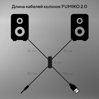 Колонки 2.0 - отличное решение для каждого, кому важен качественный и чистый звук. Модель FUMIKO BOSTON отлично подходит как для прослушивания музыки, так и для просмотра фильмов. Компактное устройство особенно пригодится владельцам ноутбуков, встроенные динамики которых не способны выдать достаточную мощность и громкость. Новейшие технологии в производстве комплектующих позволили достичь хорошего уровня громкости и чистоты звучания. С источником звука они соединяются с помощью кабеля с разъемом 3.5 мм Jack. Питание происходит от USB - больше никаких лишних проводов. Любимая музыка в громком звучании теперь всегда будет с вами. Длина кабеля позволяет подключить колонки к разъемам на задней панели персонального компьютера.Общая длина провода 105 см
