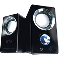 Компактная акустическая система мощностью RMS 6 Вт. Материал корпуса – пластик. Провод питания системы заканчивается USB-разъемом, т.е. для получения необходимого питания требуется подключение непосредственно к USB-порту ноутбука или ПК.