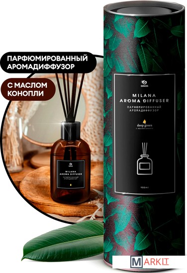 Парфюмированный аромадиффузор "Milana deep green". Диффузор с ротанговыми палочками наполнит любое помещение легким шлейфом ароматов. Сочетание теплых древесных нот и специй противостоит свежести сочного цитруса и свежескошенной травы, образуя волнующий контраст, который отражает силу природы.