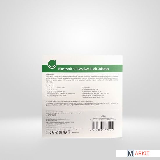 Приемник Ugreen Bluetooth 5.1 позволяет без проводов подключать телефон к устройствам, изначально не имеющим такой функции, но оснащенным разъемом RCA или мини-джеком 3,5 мм. Кодек aptX гарантирует потоковую передачу музыки без потерь и без задержек. Приемник питается от разъема micro USB. К этому практичному устройству можно подключить наушники, динамики или другое аудио оборудование с помощью мини-разъема 3,5 мм или кабеля RCA. Все устройства с перечисленными разъемами совместимы. Bluetooth 5.1 с aptX гарантирует постоянное и бесперебойное беспроводное соединение. Передатчик и приемник должны находиться в пределах 10 метров.кодеки: HIFI/SBC/AAC/apt-XЧастотная характеристика: 20 Гц-22 кГцИмпеданс: 16 ОмПитание через микро USB 5VДиапазон передачи: до 10 мВремя зарядки: 2 часаЧто в коробке:1 х Bluetooth-приемник1 х Micro USB-кабель для зарядки1 х 3,5 мм аудиокабель1 х Руководство пользователя