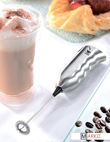 Вспениватель работает на скорости 16 000 об/мин.В комплект входит 2 батарейки АА.Эргономичная ручка вспенивателя и сам венчик изготовлены из нержавеющей стали и пластика.Съемный венчик можно мыть в посудомоечной машине.Гарантия качества 5 лет.