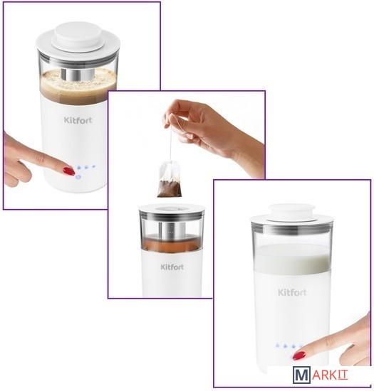 Для приготовления молочной пенки, кофе, чая!Капучинатор «3 в 1» КТ-778 – это устройство для приготовления молочной пенки, для напитков на базе эспрессо: капучино, латте, мокиато. А данная модель капучинатора многофункциональна и поможет также заварить разные виды чая, кофе или смешать напитки!Простой процесс без вашего участияКапучинатор - идеальный выбор для тех, кому не хочется осваивать процесс самостоятельного вспенивания молока, следить за температурой, добиваться плотной однородной пены. Достаточно наполнить капучинатор нужным количеством молока и нажать кнопку.6 режимов работыУправление капучинатора сенсорное, устройство работает в 6 режимах: может заварить чай улун или чёрный чай, приготовит кофе, вспенит молоко или смешает напитки. Переключение между режимами осуществляется нажатием кнопки выбора режима.Легко мыть и хранитьВсе части капучинатора съёмные и поэтому легко очищаются. Прибор удобно хранить благодаря компактному размеру. Лаконичный и минималистичный дизайн капучинатора станет отличным дополнением вашей кухни.Для смешивания и вспенивания!Насадка для смешивания и спенивания используется в режимах: «Кофе», «Взбивание молока» или «Смешивание». Для взбивания молочной пенки не превышайте максимальную отметку, указанную внутри.Прозрачное окошко для наблюденияЧерез прозрачную верхнюю часть корпуса можно наблюдать за процессом приготовления молочной пенки, кофе или чая. Капучинатор автоматически отключается, когда процесс приготовления выполнен.