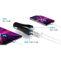 Автомобильный адаптер питания USB2 USB-порта для зарядки устройствВозможность заряжать сразу два устройства от бортовой сети автомобиля.Защита от перегрузки и короткого замыканияПомогает обезопасить заряжаемое устройство в случае возникновения каких-либо проблем при зарядке.Подходит для любого автомобиляДля подключения к питанию требуется стандартный автомобильный прикуриватель.Незаменим для зарядки различных типов устройствПодходит для планшета, смартфона, электронной книги и других устройств.