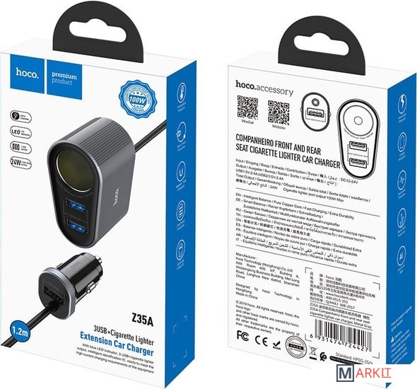 Markit » Зарядные устройства » Автомобильное зарядное Hoco Z35A (серый)