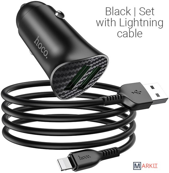 Markit » Зарядные устройства » Автомобильное зарядное Hoco Z39 Farsighted Lightning (черный)