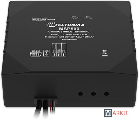 MSP500 - это специальный терминал слежения с возможностью подключения GNSS / GSM / Bluetooth, внутренними антеннами GNSS / GSM, интерфейсом RS232 и встроенным Ni-Mh аккумулятором. Устройство был разработано для контроля ограничения скорости. Кроме того, устройство содержит встроенный извещатель и реле для ограничения скорости на основе переключения питания топливного насоса или управления педалью акселератора, используя дополнительный электронный контроллер дроссельной заслонки