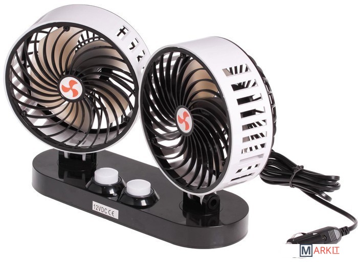 Вентилятор предназначен для обдува воздухом водителя и/или пассажиров в жаркую погоду. Крепится на панель приборов. Имеет выключатель питания с регулировкой для каждого вентилятора и надёжный штекер.Размер: 2*150ммНапряжение питания: 12вМощность: 30втТип вентилятора: осевой