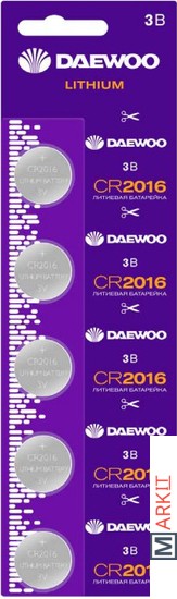Markit » Батарейки, аккумуляторы, зарядные » Батарейка Daewoo Lithium CR2016-BP5 5шт