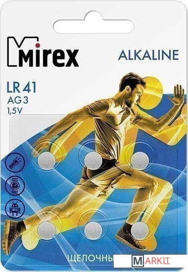 Батарейка Mirex LR41 производится по специальной технологии “AntiLeaX», что при соблюдении условий хранения и эксплуатации сводит риск вытекания электролита практически к нулевым показателям. Элемент LR41 взаимозаменяем с подходящими ему по форме аналогами, которые располагают маркировкой «AG3».