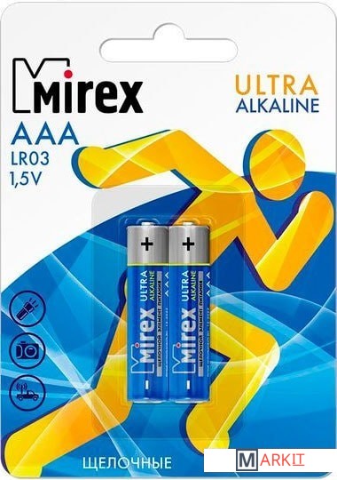 Markit » Батарейки, аккумуляторы, зарядные » Батарейка Mirex Ultra Alkaline AAA 2 шт LR03-E2
