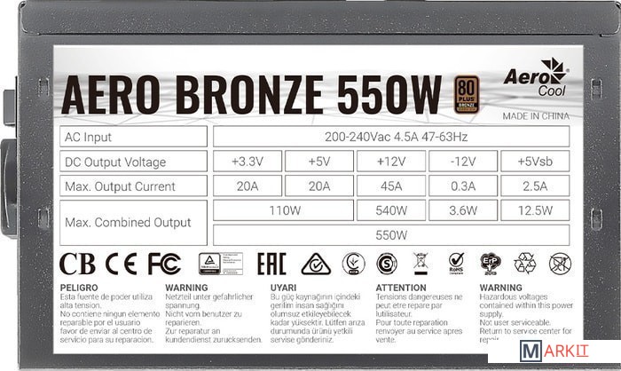 Markit » Блоки питания » Блок питания AeroCool Aero Bronze 550W