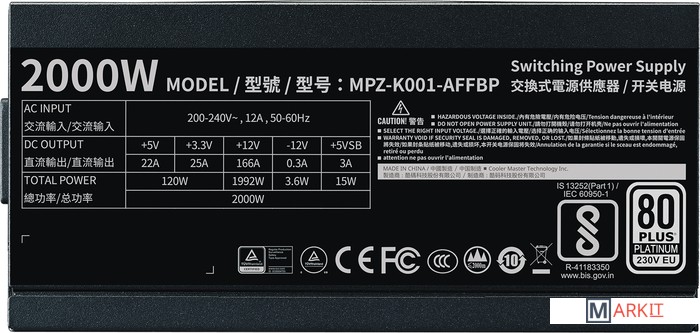 Markit » Блоки питания » Блок питания Cooler Master M2000 Platinum MPZ-K001-AFFBP-EU