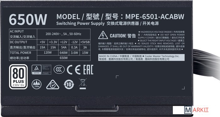 Markit » Блоки питания » Блок питания Cooler Master MWE 650 White 230V V2 MPE-6501-ACABW-EU