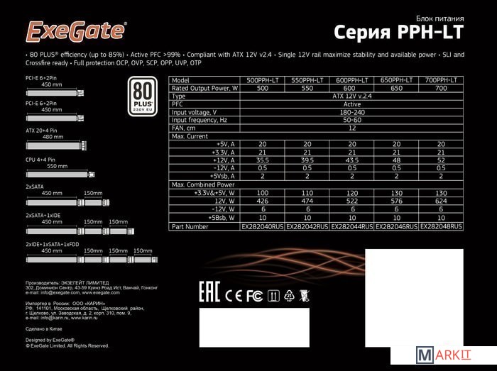 Markit » Блоки питания » Блок питания ExeGate 500PPH-LT 80 Plus EX282040RUS