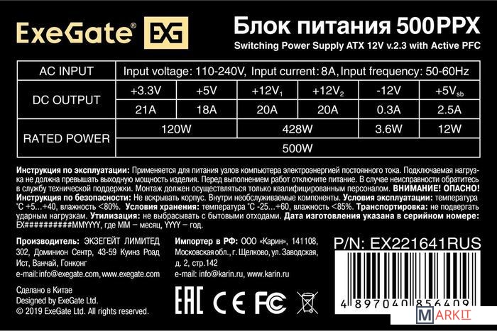 Markit » Блоки питания » Блок питания ExeGate 500PPX EX221641RUS