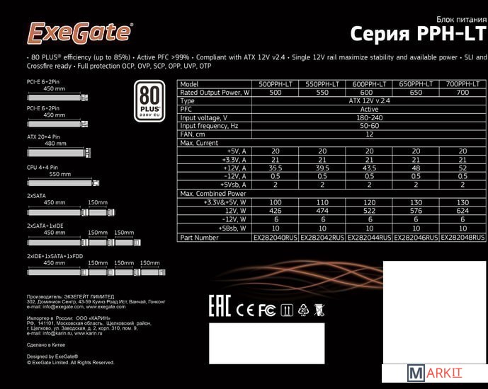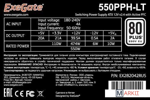 Markit » Блоки питания » Блок питания ExeGate 550PPH-LT 80 Plus EX282042RUS