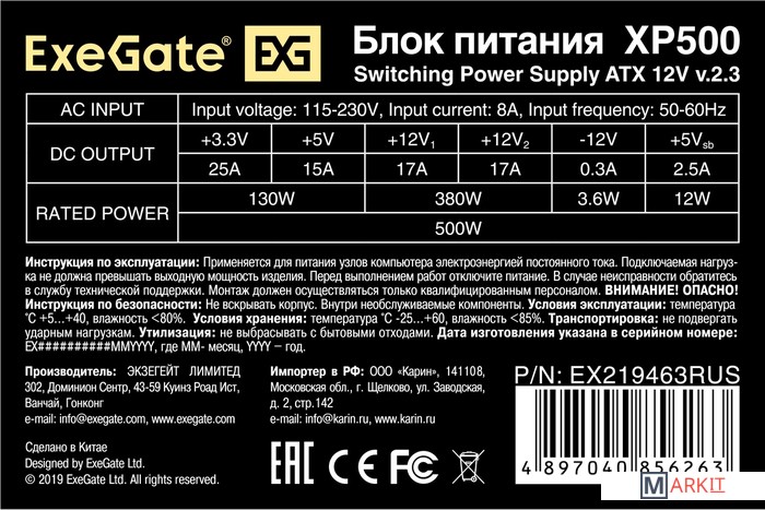 Markit » Блоки питания » Блок питания ExeGate ATX-XP500