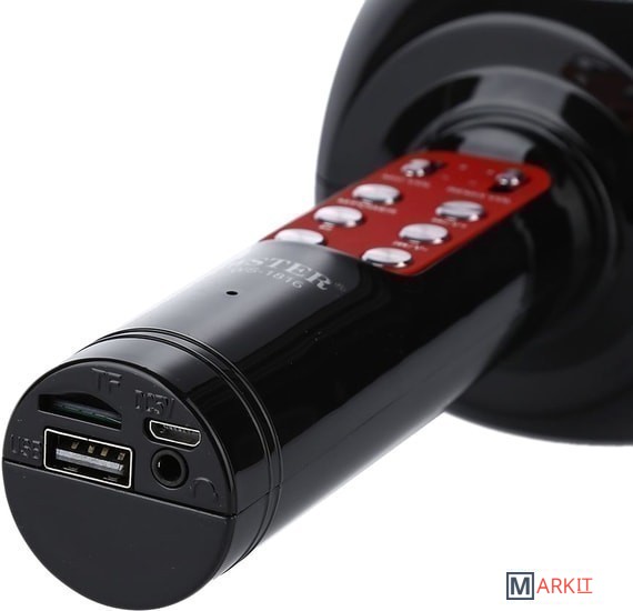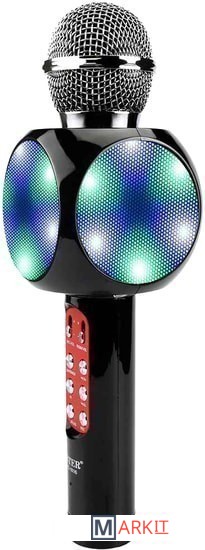 Ручной микрофон с аудио модулем и LED подсветкой, встроенный динамик.Модель WS-1816 оснащена беспроводным модулем Bluetooth, FM радиоприемником, слотом USB, TF и microUSB для чтения/трансляции музыкальных файлов.