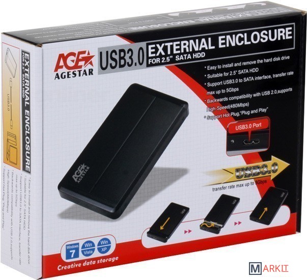 Markit » Боксы для накопителей » Бокс для накопителей 2.5" AgeStar 3UB2O8 Black