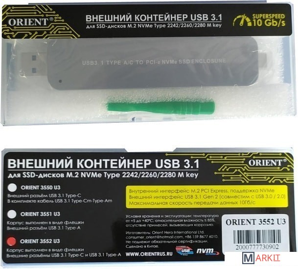 Markit » Боксы для накопителей » Бокс для накопителей M.2 Orient 3552 U3
