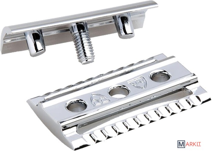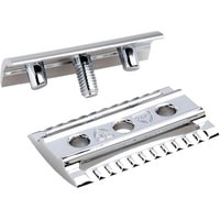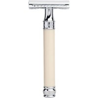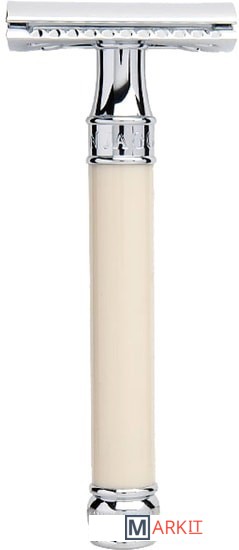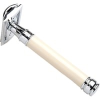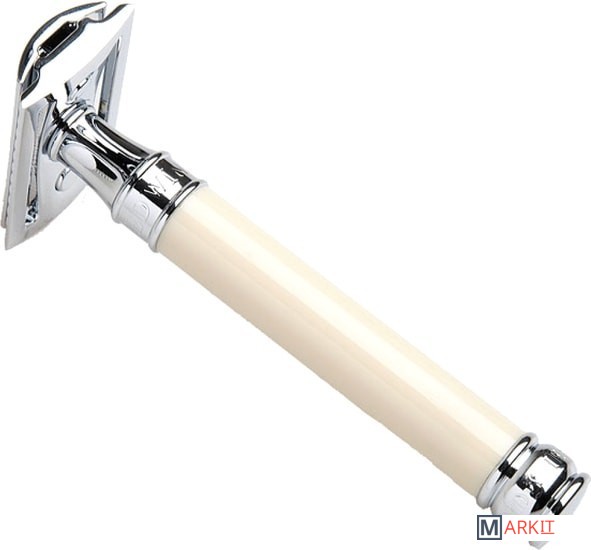 Элегантный традиционный станок с удлиненной ручкой цвета слоновой кости. Бритва с закрытым гребнем и состоит из трех частей. Хромированные элементы украшают бритву и делают ее не только желанным аксессуаром, но и превосходным подарком. Бритва предназначена для ежедневного бритья. Длина ручки - 102 мм.