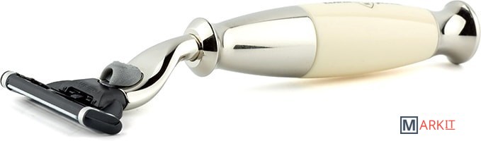 Бритвенный станок Diffusion английского бренда Edwin Jagger с системой Mach3 c ручкой из акриловой смолы цвета слоновой кости. Все металлические элементы бритвы сделаны из высококачественной нержавеющей стали и покрыты никелем для придания особого блеска и дополнительной стойкости к коррозии. Бритва поставляется в фирменной подарочной упаковке.