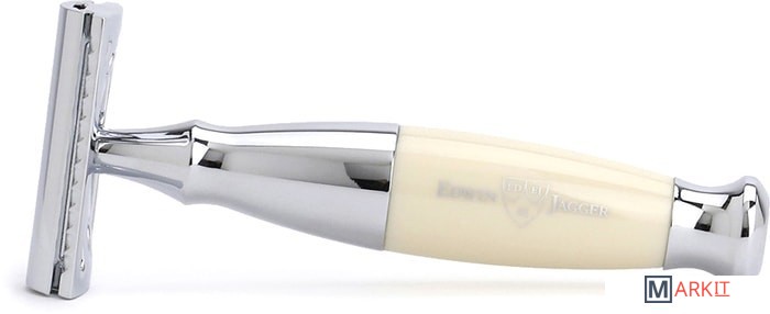 Edwin Jagger является передовым европейским производителем элитных бритв, изготовленных в Англии из первоклассных полиэфирных материалов с хромированной отделкой. Бритва имеет легкий вес и прекрасно сбалансирована, используется со стандартным двухсторонним лезвием. Поставляется в фирменной упаковке Edwin Jagger. Головка закрытого типа. Цвет ручки - слоновая кость.