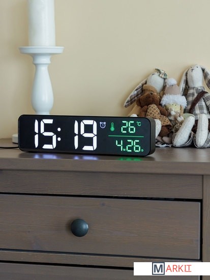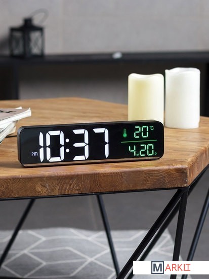 Особенности:— Простой лаконичный дизайн— Яркий контрастный экран с крупными цифрами— Регулируемая яркость— Качественный приятный звук будильника— Запоминание настроек при отключении питания— Отображение даты и температуры воздуха