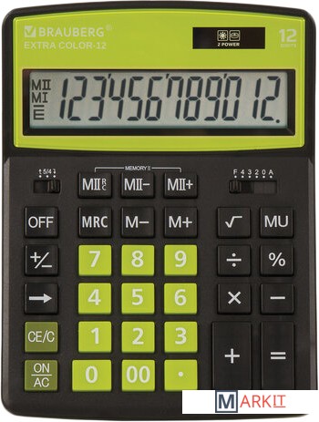 Markit » Калькуляторы » Бухгалтерский калькулятор BRAUBERG Extra Color-12-BKLG 250477 (черный/салатовый)