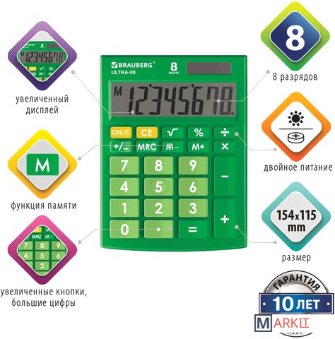 Markit » Калькуляторы » Бухгалтерский калькулятор BRAUBERG Ultra-08-GN 250509 (зеленый)