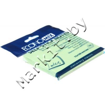 Бумага для заметок с липким краем Economix, 75 x 100 мм, 1 блок x 100 л., зеленая Код: 31126