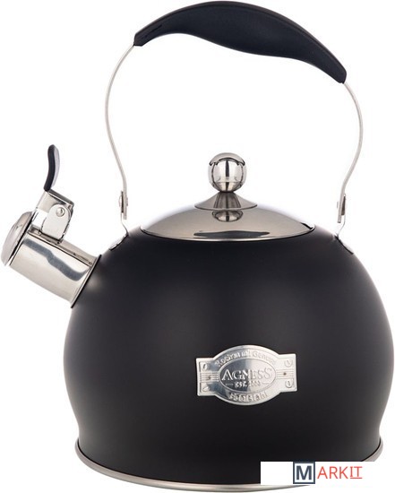 Термоаккумулирующее дно ИМЕЕТ МНОГОСЛОЙНУЮ СТРУКТУРУ, в состав которой входит толстая пластина из алюминия, запрессованная под высоким давлением с металлическим диском, еще одной пластиной из алюминия, и эта конструкция закрывается капсулой из нержавеющей стали. Благодаря высокой теплопроводности алюминия термоаккумулирующее дно имеет свойства накапливать (аккумулировать) тепло и быстро и равномерно распределять его по всей поверхности посуды.В чайниках с термоаккумулирующим дном вода закипает быстрее, и дольше остается горячей.Легко наливать воду. Используя клапан на ручке чайника, вы легко сможете налить воду. Просто нажмите на клапан, чтобы открыть носик чайника.Встроенный свисток подскажет, что вода в чайнике закипела и его пора снимать с плиты.Благодаря внешнее жаропрочному покрытию и стильному дизайну чайник AGNESS украсит любую кухнюПодходит для всех типов плит, включая ИндукционныеМеталлический чайник AGNESS - незаменимый атрибут в Вашем доме, а также прекрасный подарок для Ваших близких.