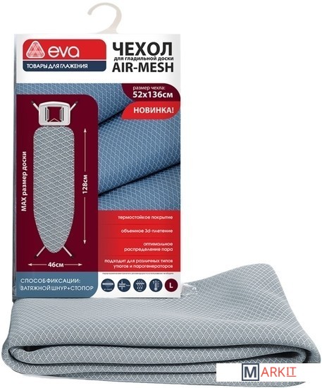 Чехол для гладильной доски EVA Air-mesh выполнен из материала, не имеющего аналогов на рынке. Ячеистая структура обеспечивает оптимальное распределение температуры и пара, хорошее скольжение. Подходит для всех типов утюгов. Эти качества материала позволяют достичь профессионального результата при глажении и отпаривании одежды.