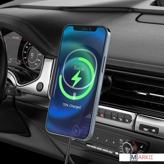 1. Материал: ABS + акрил.2. Поверхность: текстурирование.3. Размер: 95*62*72мм. Вес: 290г.4. Выходная мощность: 5W / 7.5W / 10W / 15W.6. Крепление: воздуховод автомобиля.7. Поддержка магнитного позиционирования зарядки только для iPhone 12.