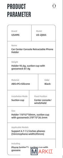 Markit » Аксессуары для салона автомобиля » Держатель для смартфона Usams ZJ065ZJ01 (черный)