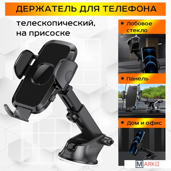 Автомобильный телескопический держатель для телефона на присоске.